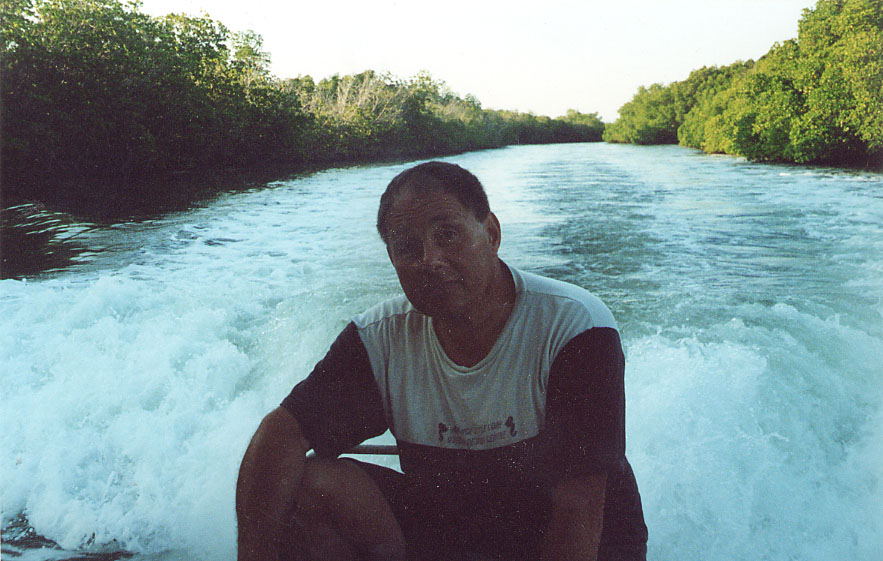 Dad smiles as we approach, unaware he is about to be pushed screaming into the water.